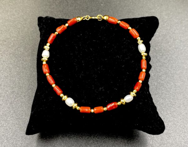 Bracciale Corallo Rosso Rubrum Perle Argento 925% finitura oro giallo