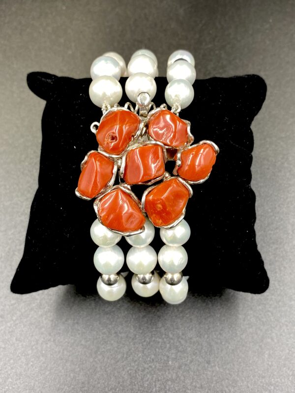 Bracciale Perle e Corallo Rosso Rubrum Argento 925%