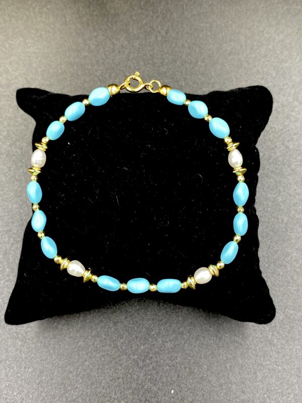 Bracciale Turchese e Perle Argento 925% finitura oro giallo