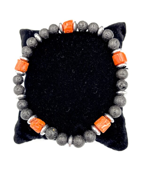 Bracciale Uomo Corallo Rosso Rubrum E Lava Argento 925%