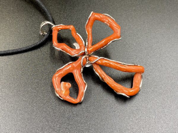 Ciondolo Croce Argento 925% Corallo Rosso Rubrum