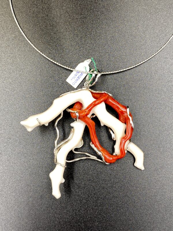 Ciondolo Ramo di Corallo rosso Rubrum e Corallo Bianco Argento 925%