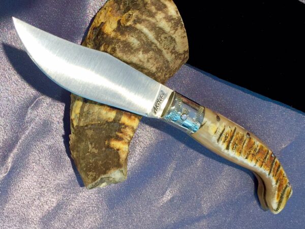 Coltello pattadese artigianale Gavino c Lama 10 cm Acciaio c70 Misura totale cm 22. Manico incorno di bufalo striato.