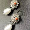 Orecchini Bottone Sardo argento 925% Filigrana Corallo Rosso Perla