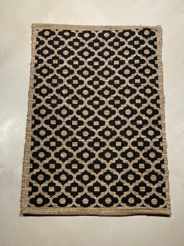 Tappeto realizzato a telaio in juta misto cotone, alta qualità manifatturiera, lavabile in lavatrice. Misura 150 x 80